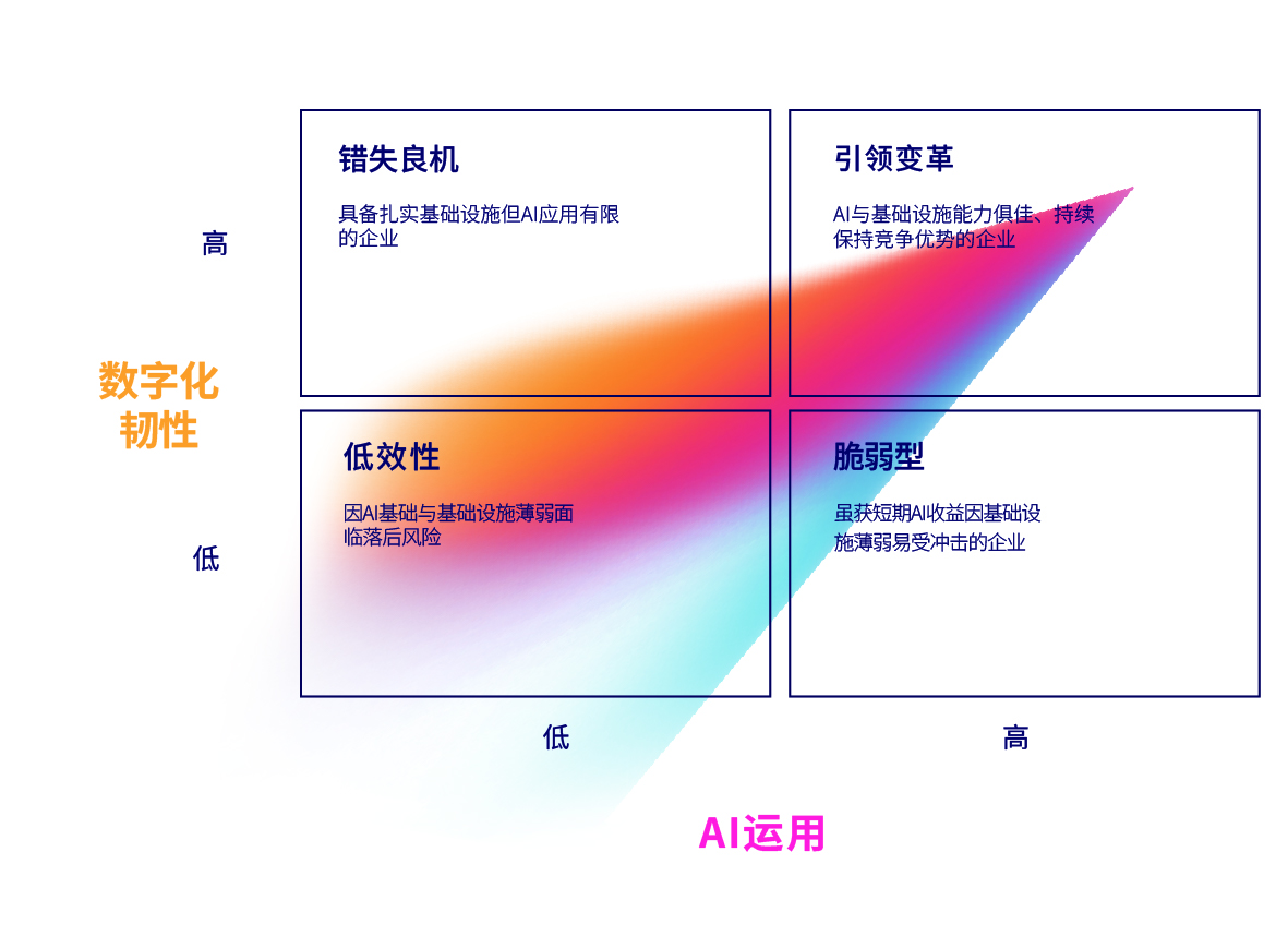 它直指 AI 应用的 “根基”—— 即便 AI 技术本身先进,若底层支撑存在短板(如数据不可靠、系统易故障),也难以实现稳定落地;而数字韧性的强弱,更决定了企业在面对 AI 相关风险时的抗干扰能力与恢复效率。